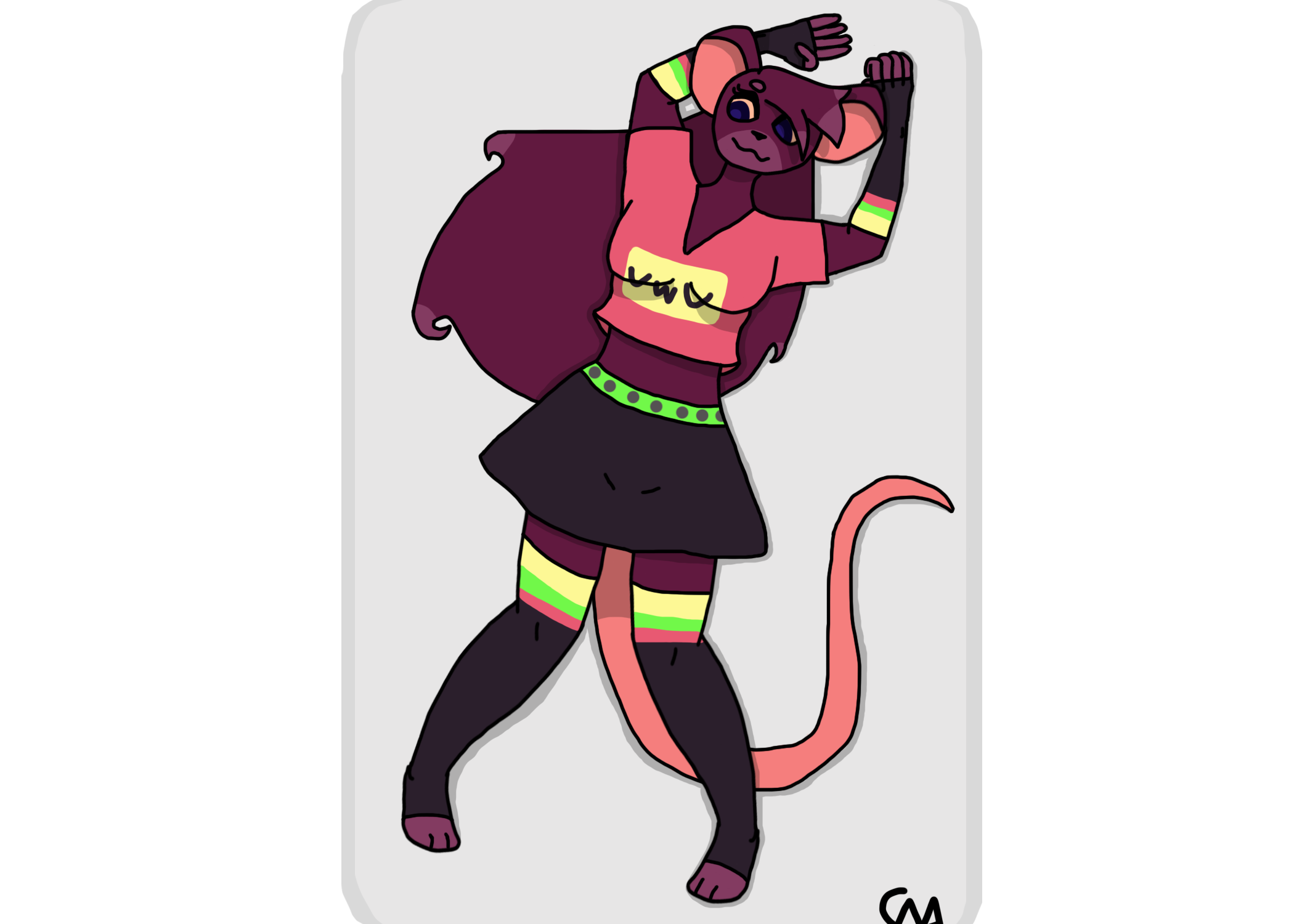 A character created as a joke in a Discord server that I'm in has now spiraled into a character I draw a lot of. I love the colors I picked, which I found online, and her oufit is made up of my favorite elements of character design. Clothes that show a bit of skin, fingerless gloves, and thigh highs are all things I love to draw. Anyway, I drew her on a bodypillow to get a reaction out of my friends and it was worth it.