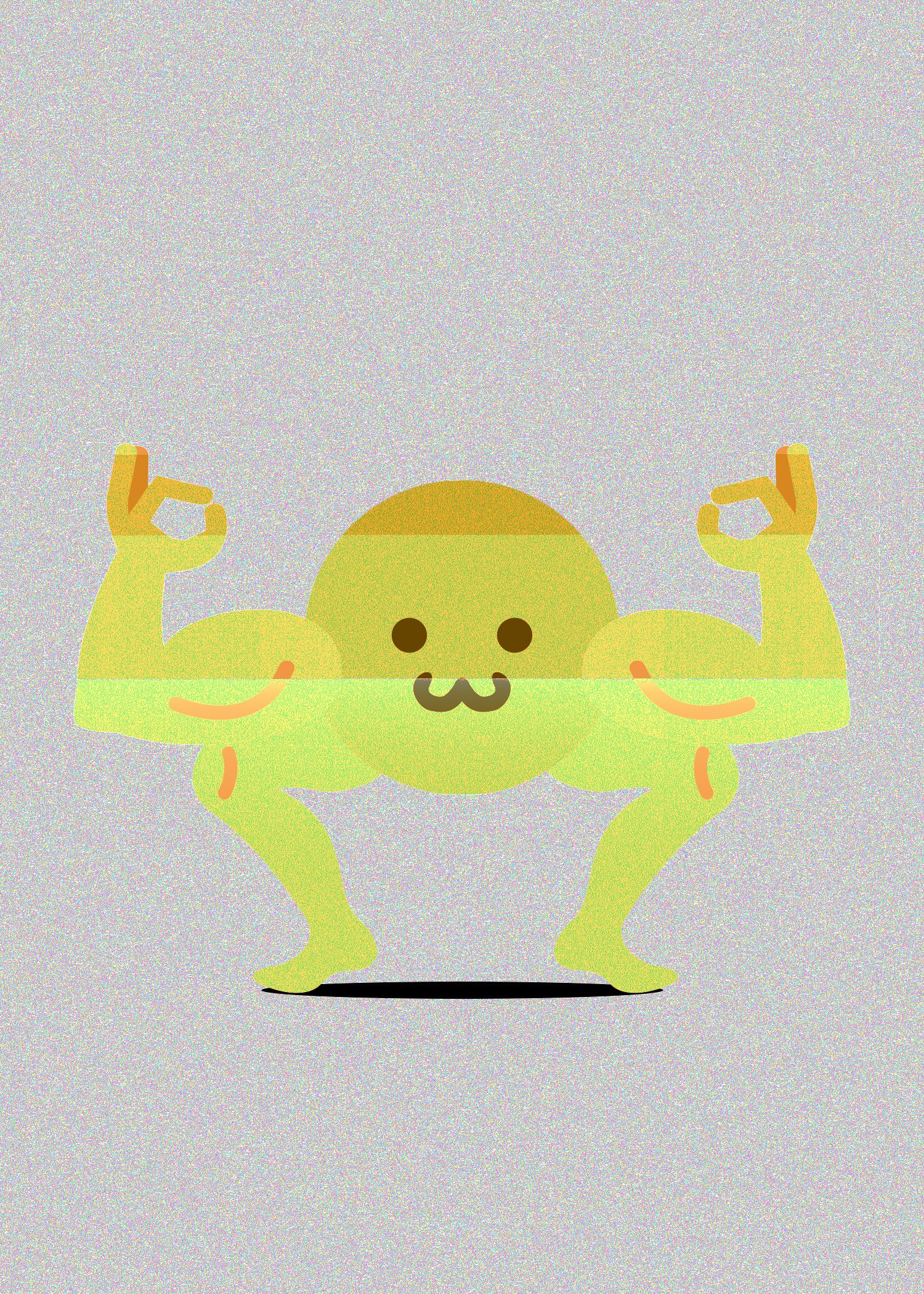 The second image I glitchified. A mash-up of emoji parts into another joke character me and a friend came up with. The outcome was a lot cooler then the previous one, as it gave the character and intresting gradient and a background. However, I can not tell you what effects I used to reach this final image, sadly.